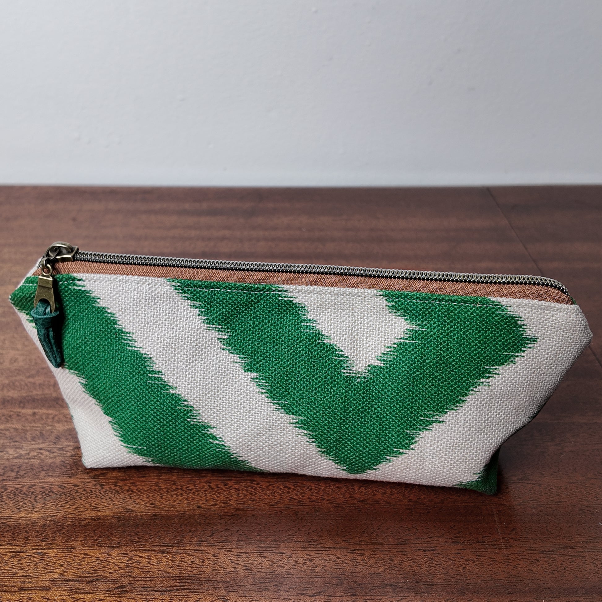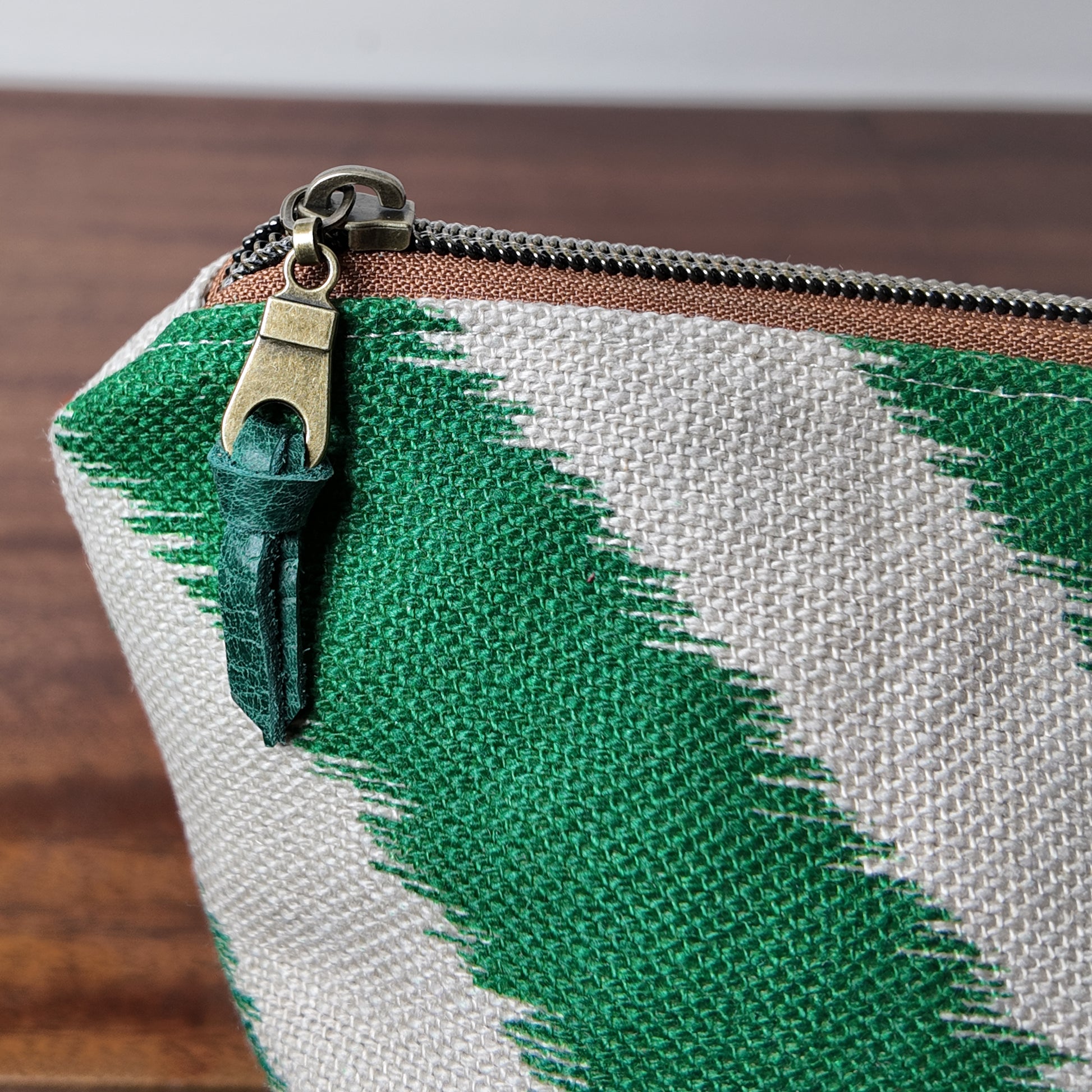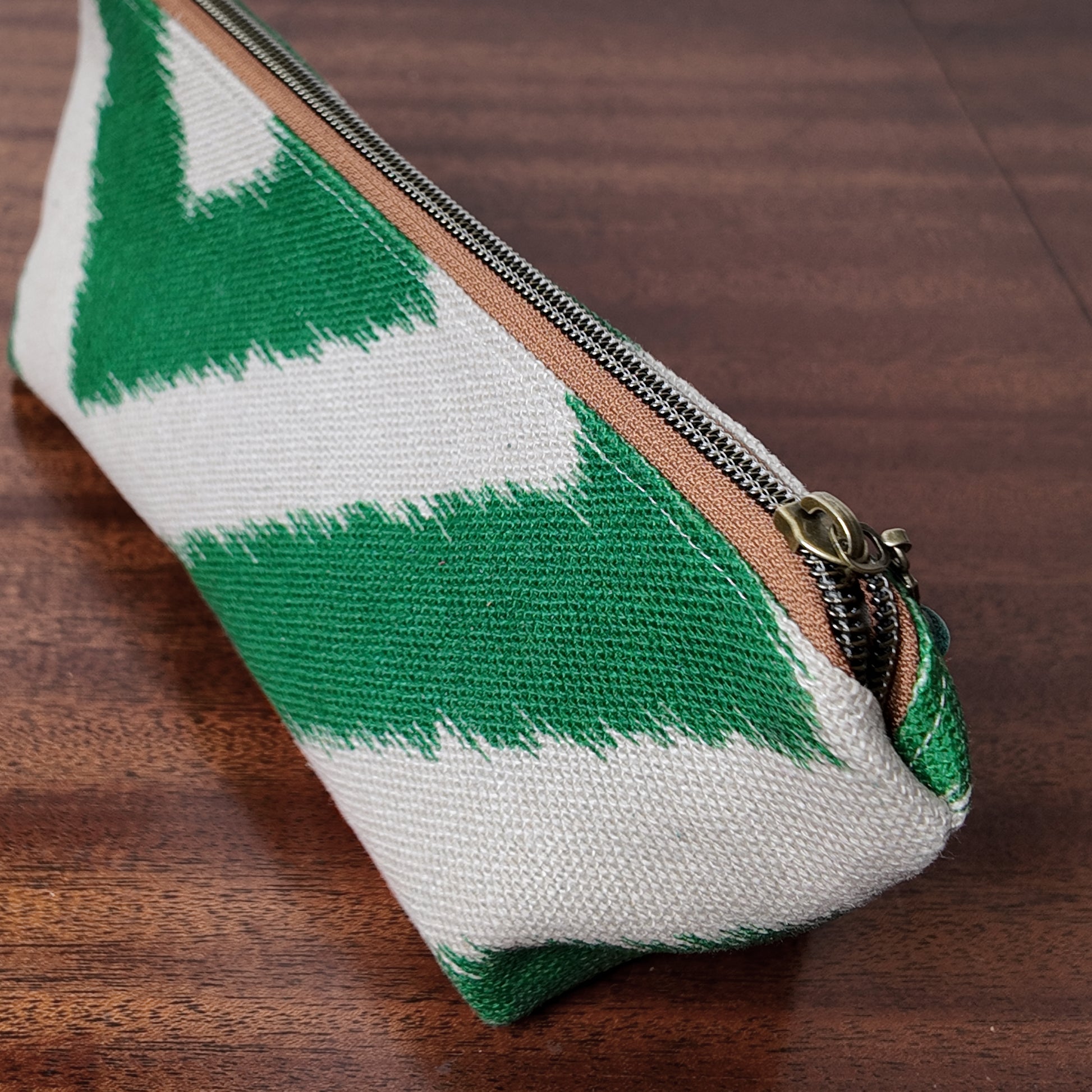 Green Zig Zag Pouch - Upcycled - OOAK