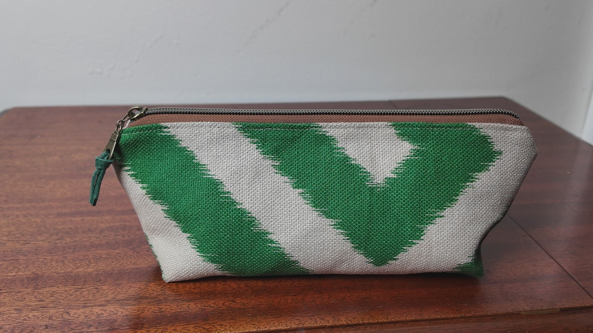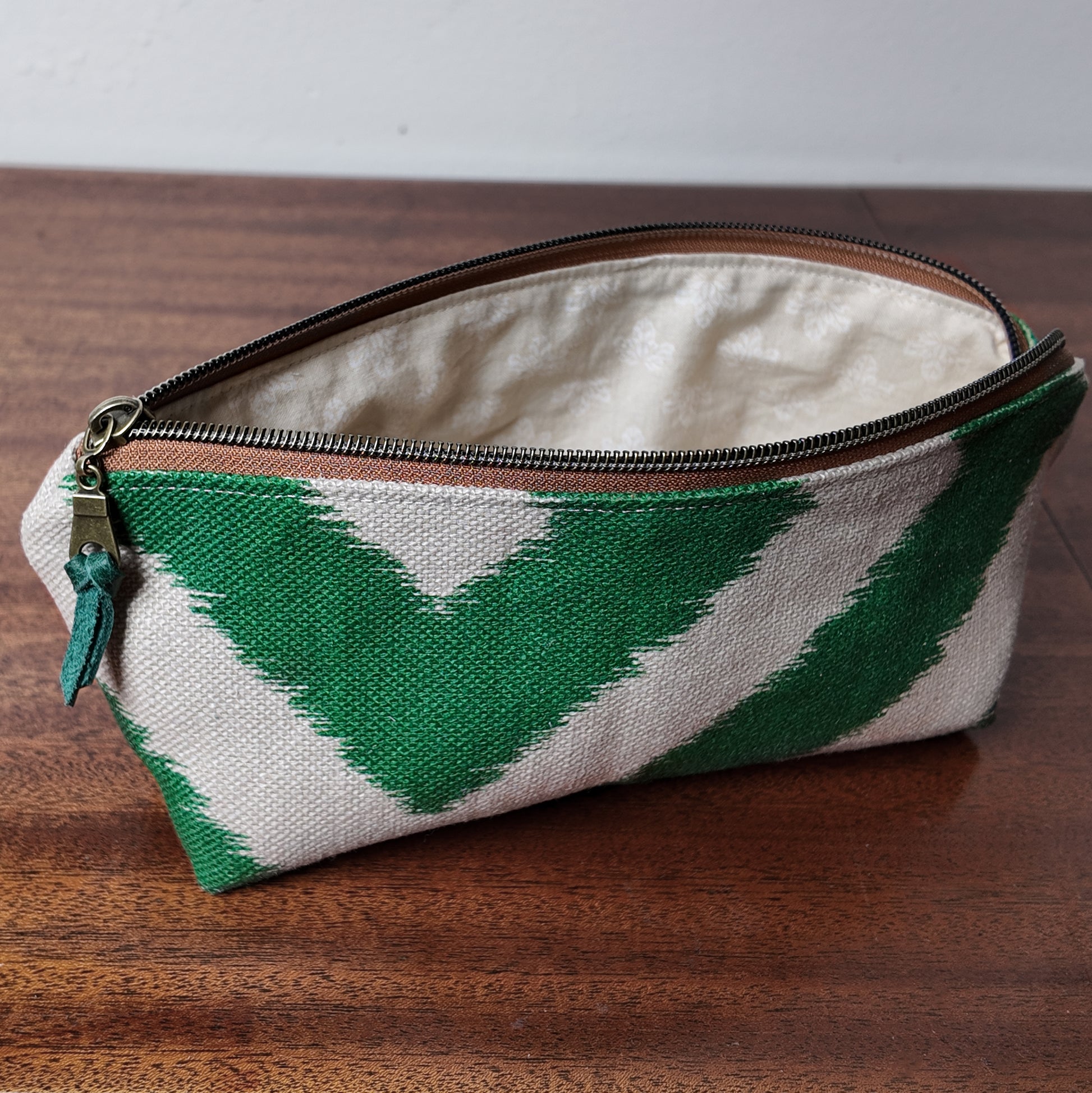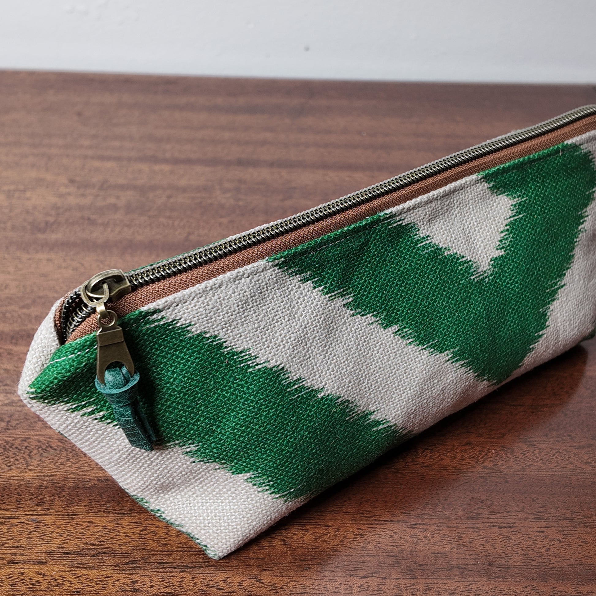 Green Zig Zag Pouch - Upcycled - OOAK