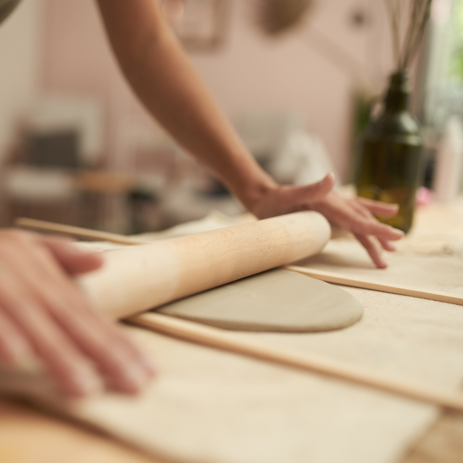 Join me for Intro to Hand Building / Slabs, a laid-back, hands-on class where we'll dive into the basics of clay forms. During this 4 week class, you will make a trinket dish, ceramic mug or planter, and a stiff slab lidded box while learning to use GR Forms, ceramic stamps, and templates. During week 4 you'll also get to finish your pieces with glaze. It's all about learning the essentials at a comfortable pace, getting messy, and having fun with clay.